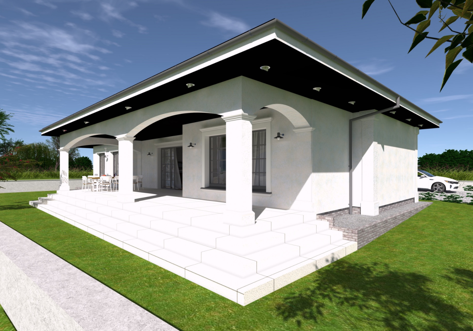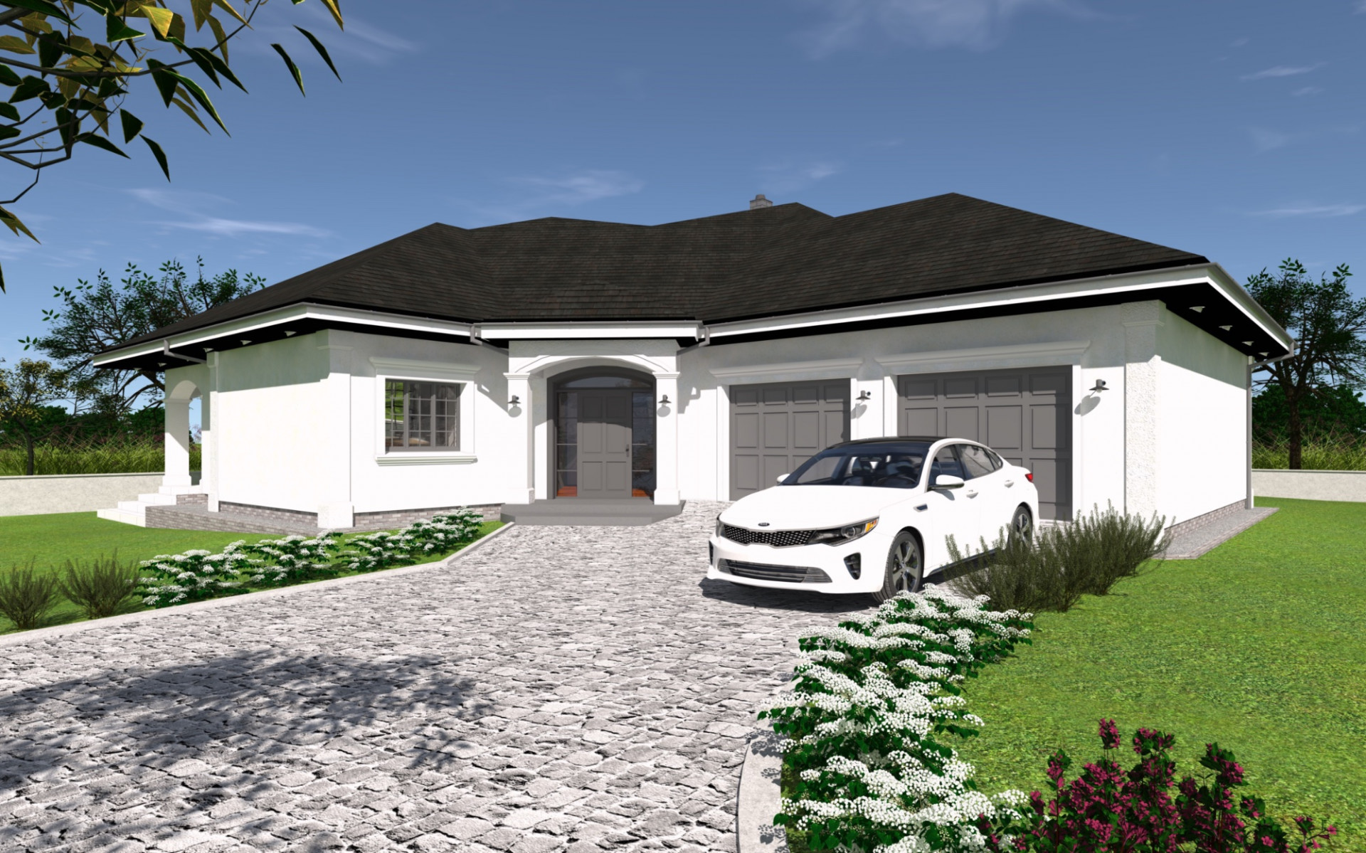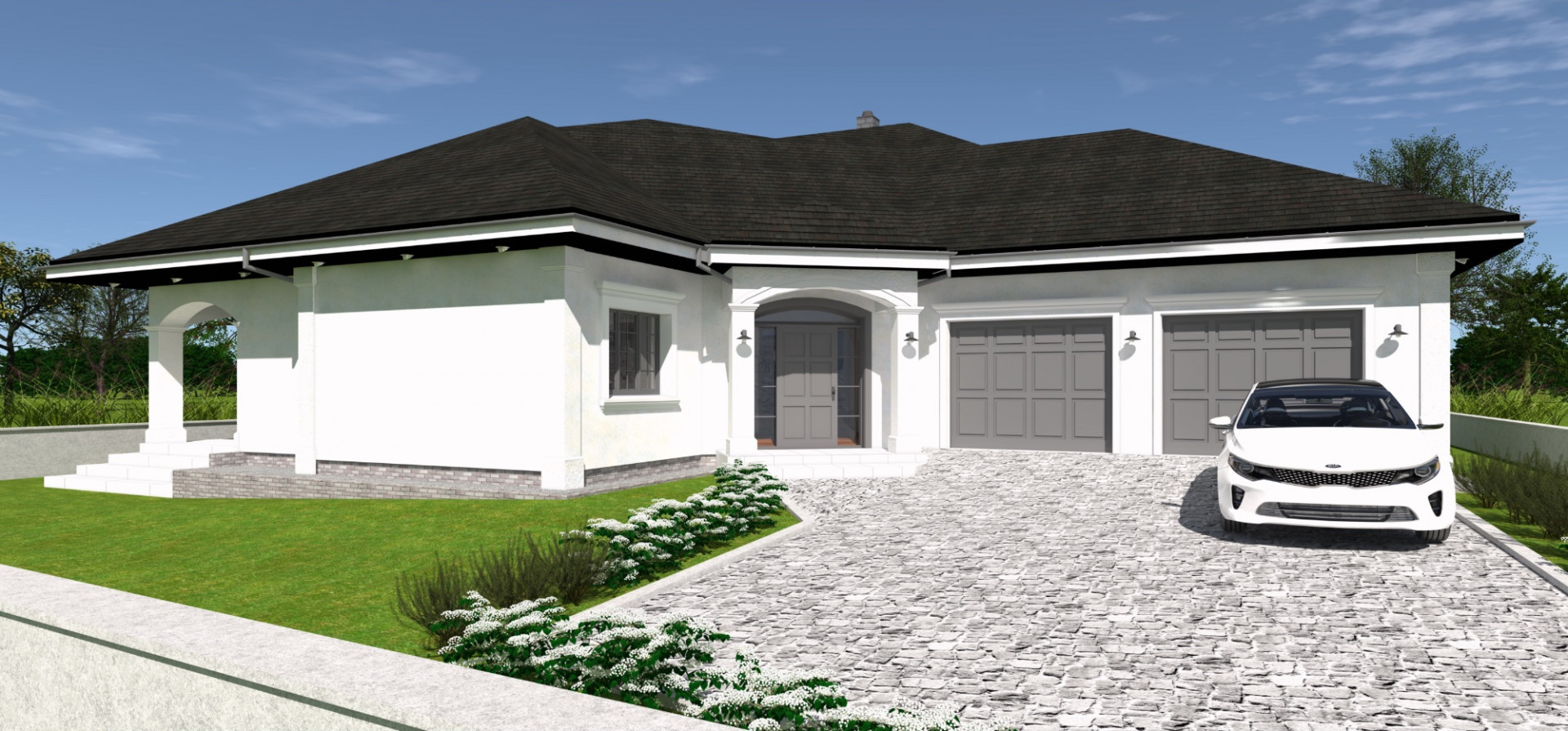 Projekt domu w zabudowie parterowej.