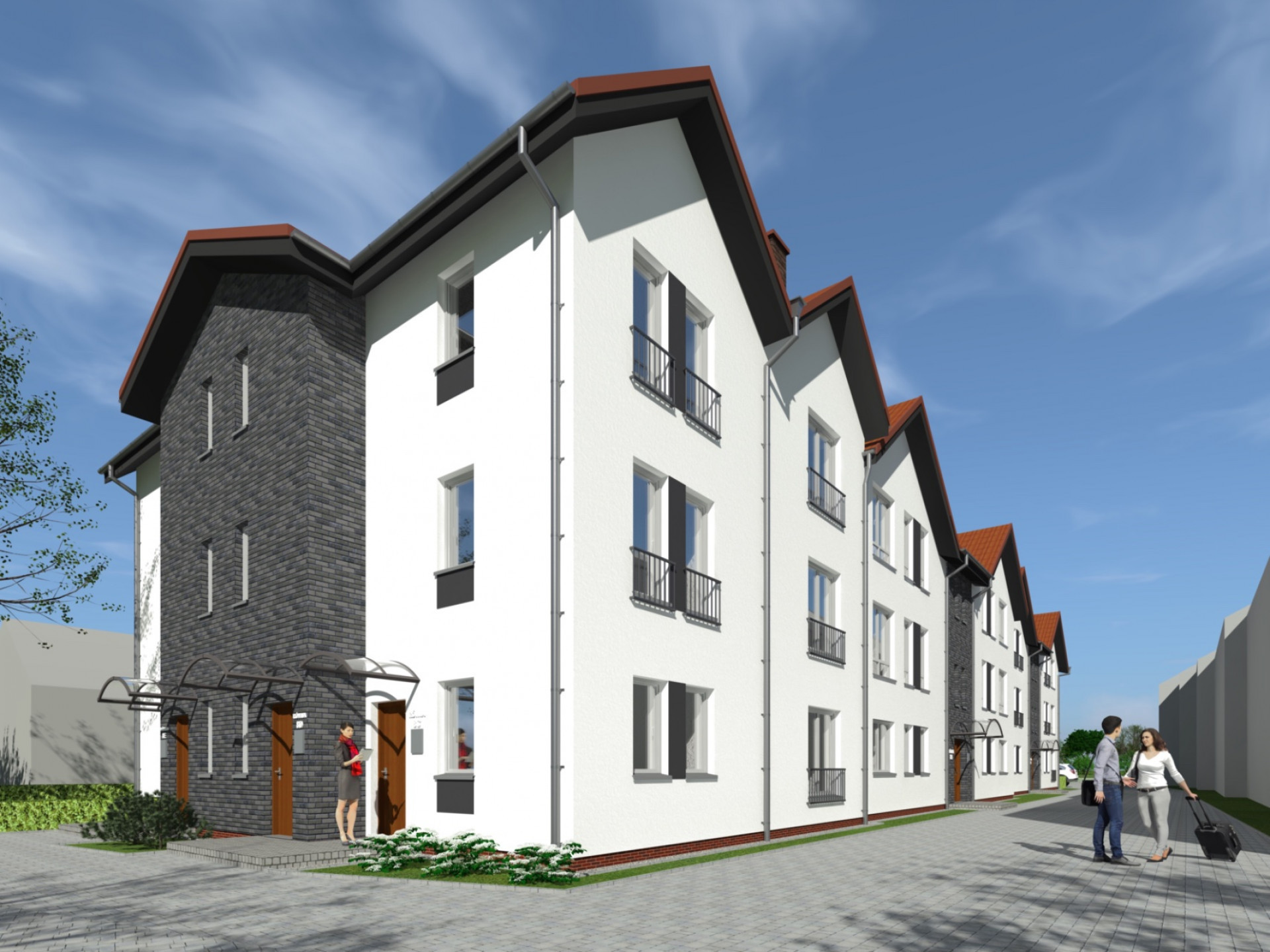 Przeprojektowano zróżnicowane elewacje nadając zabudowie kamienicowego charakteru.